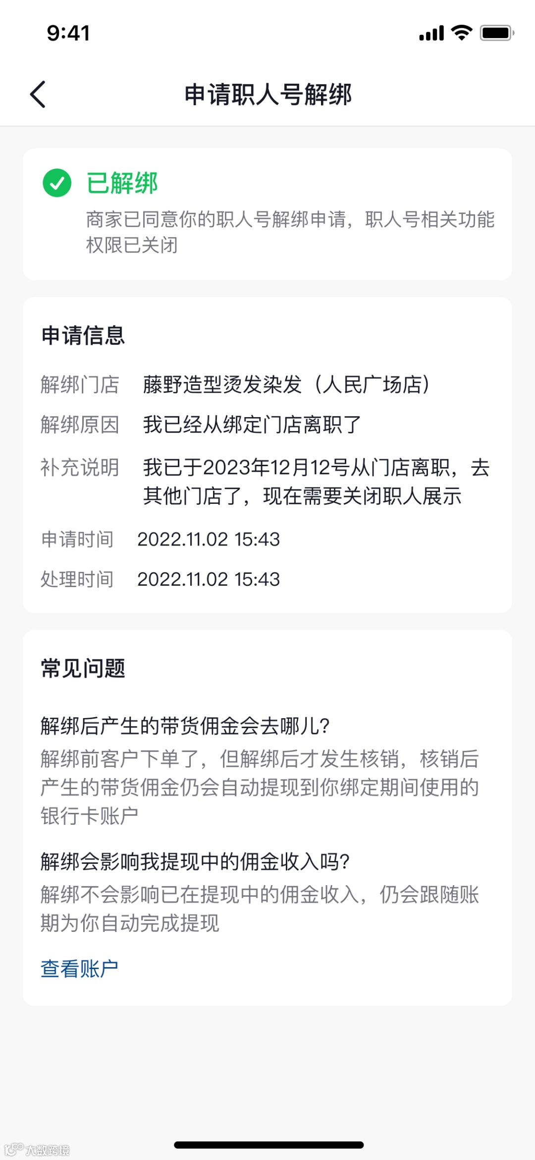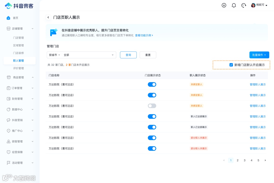 可查看到核销在非职人所绑定门店的订单