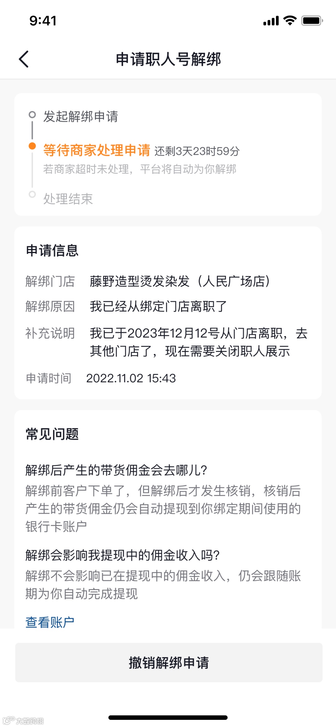以下单时刻的佣金、GMV计算职人应得的费用,在核销完成及账期后可进行提现