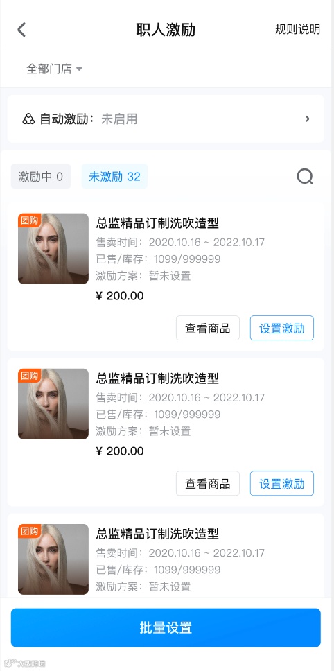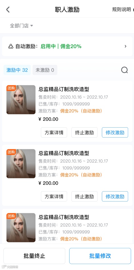 职人激励列表页中,可逐一对在售商品进行佣金设置或修改激励佣金。