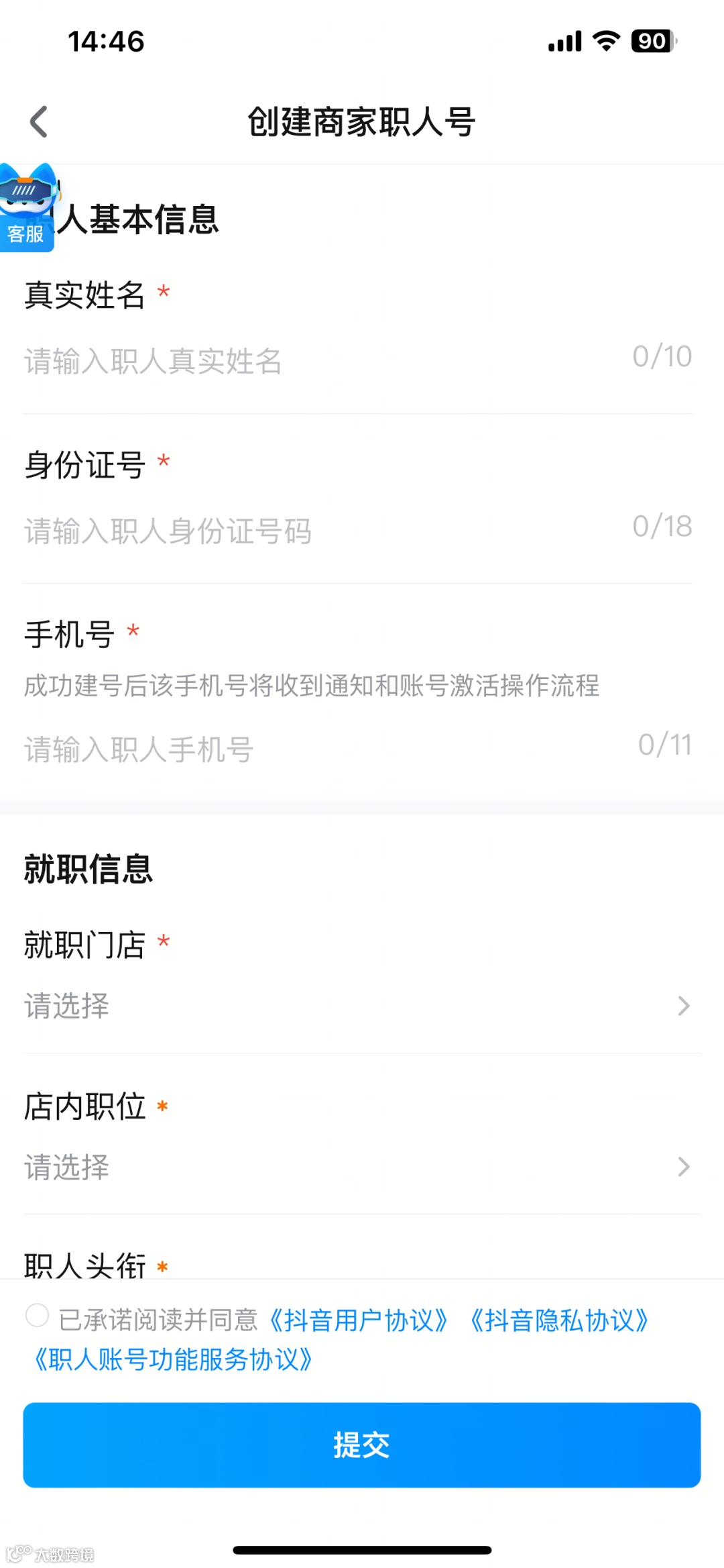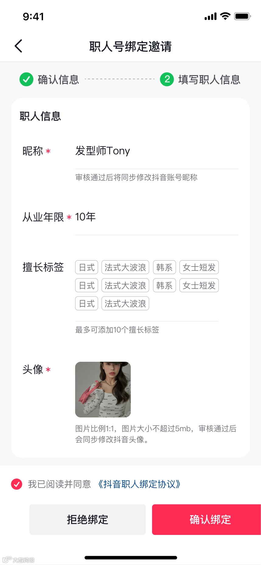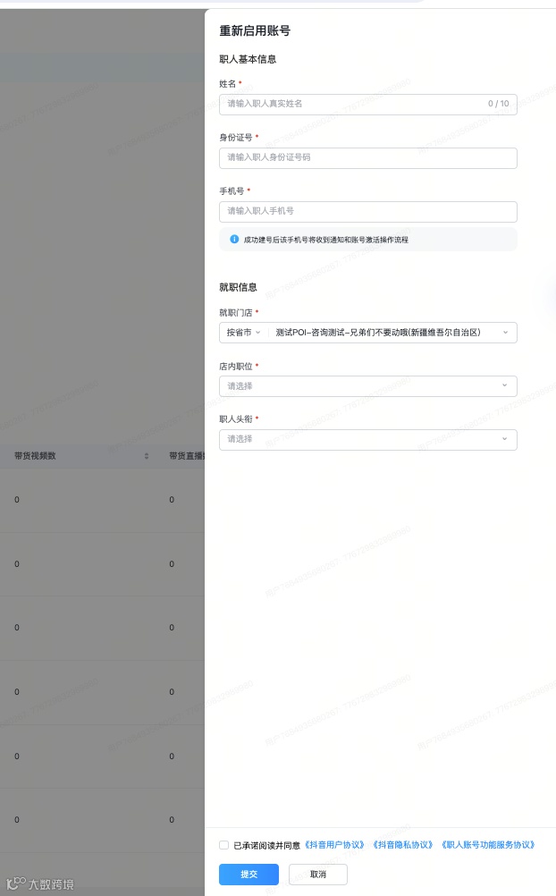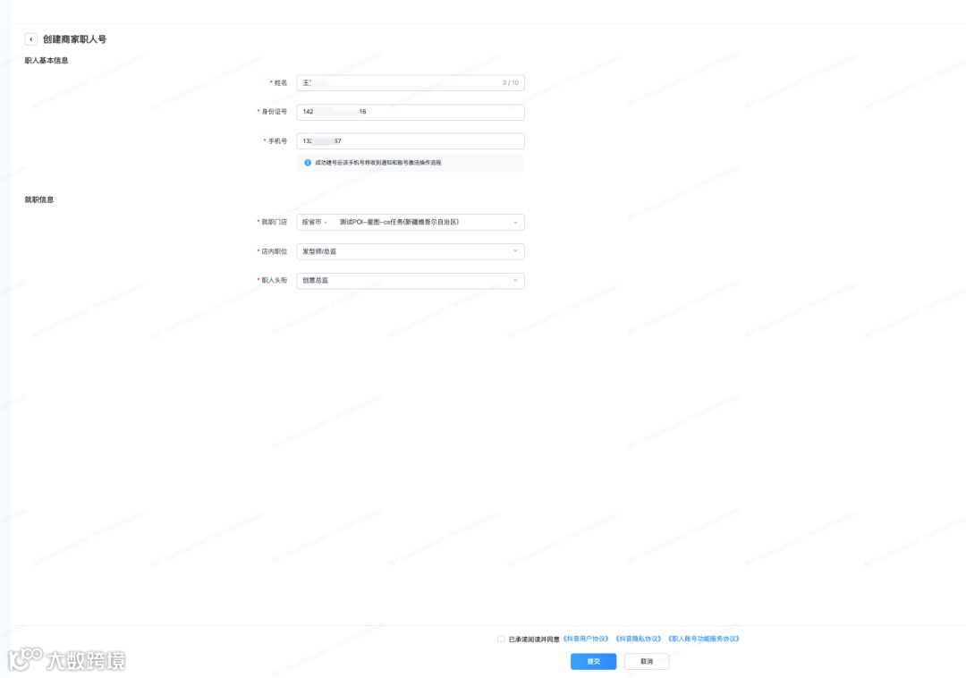 商家需准备:职人身份、职人昵称、职人头像、职人签约门店、职人抖音账号、职人真实姓名。