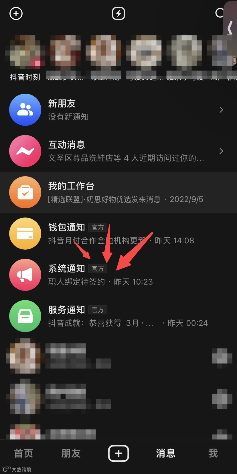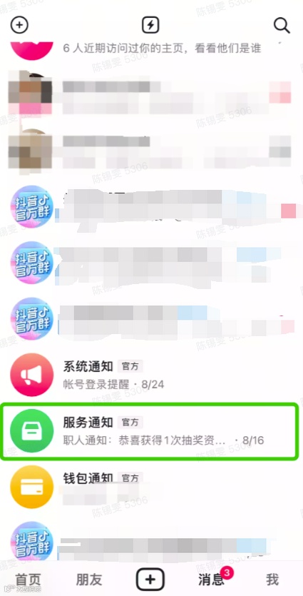 第一步 打开抖音-消息 |