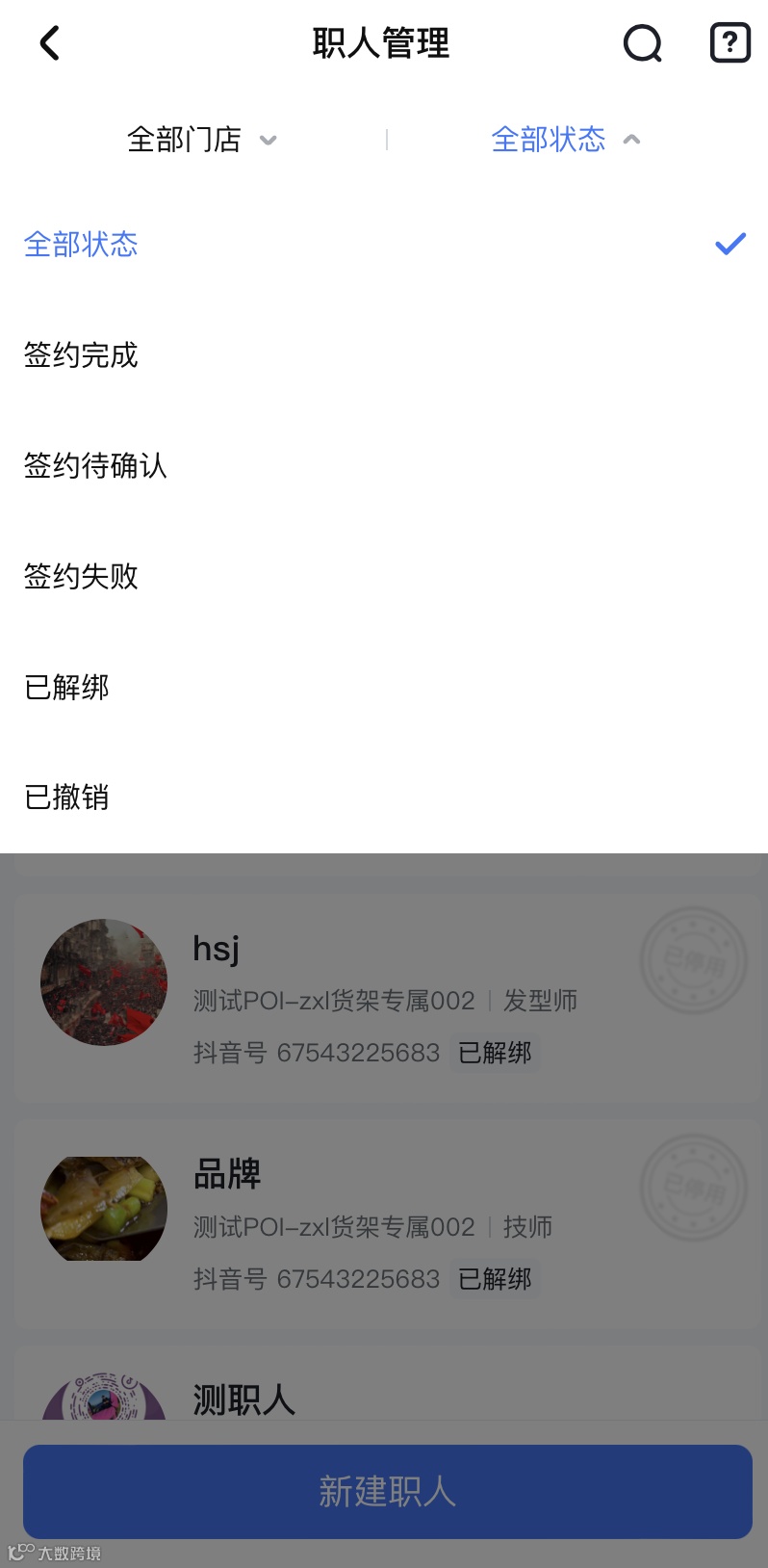 二、职人账号签约与解约