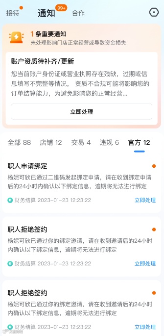 商家需要进行协议二次确认,涉及协议修改
