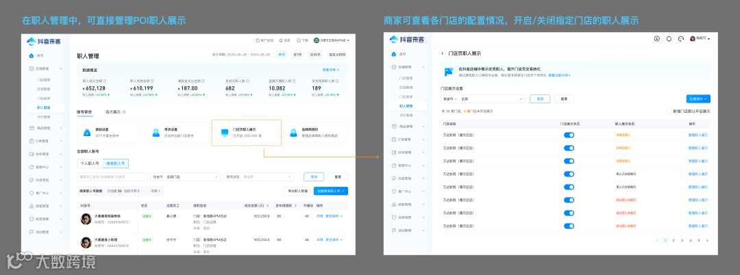 职人是商家自己的达人,通过把门店里的员工认证成为门店职人,员工可“0门槛”获得在抖音的带货能力,通过视频、直播进行线上带货,或者线下通过职人码让消费者扫码下单。