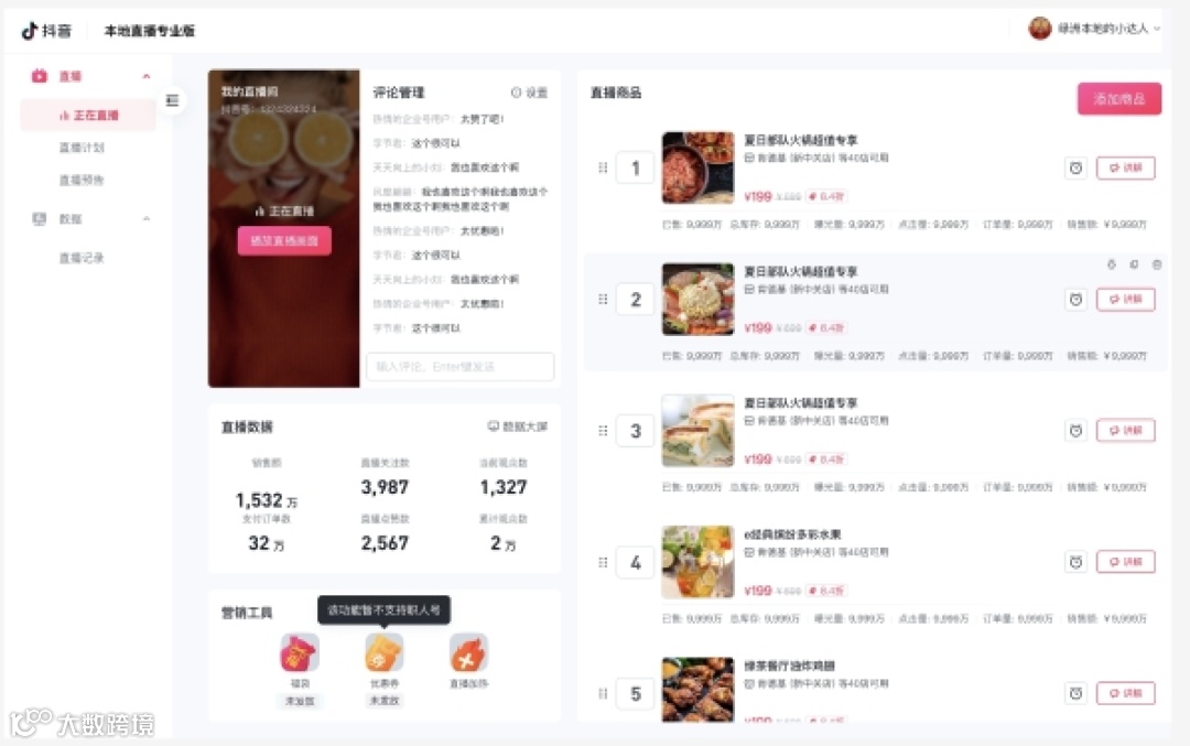 直播数据详情: