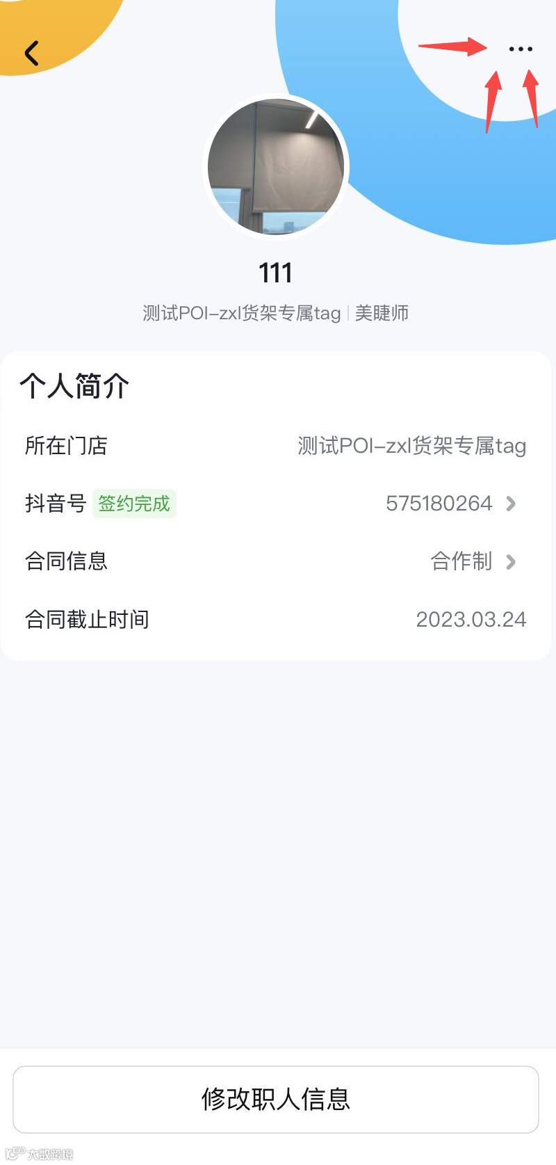 点击身份箭头->查看员工信息 |