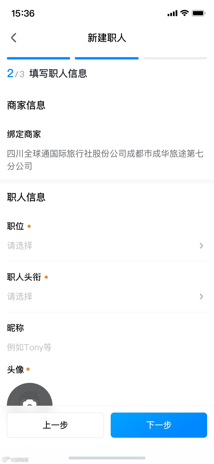 商家发起绑定流程,输入职人信息