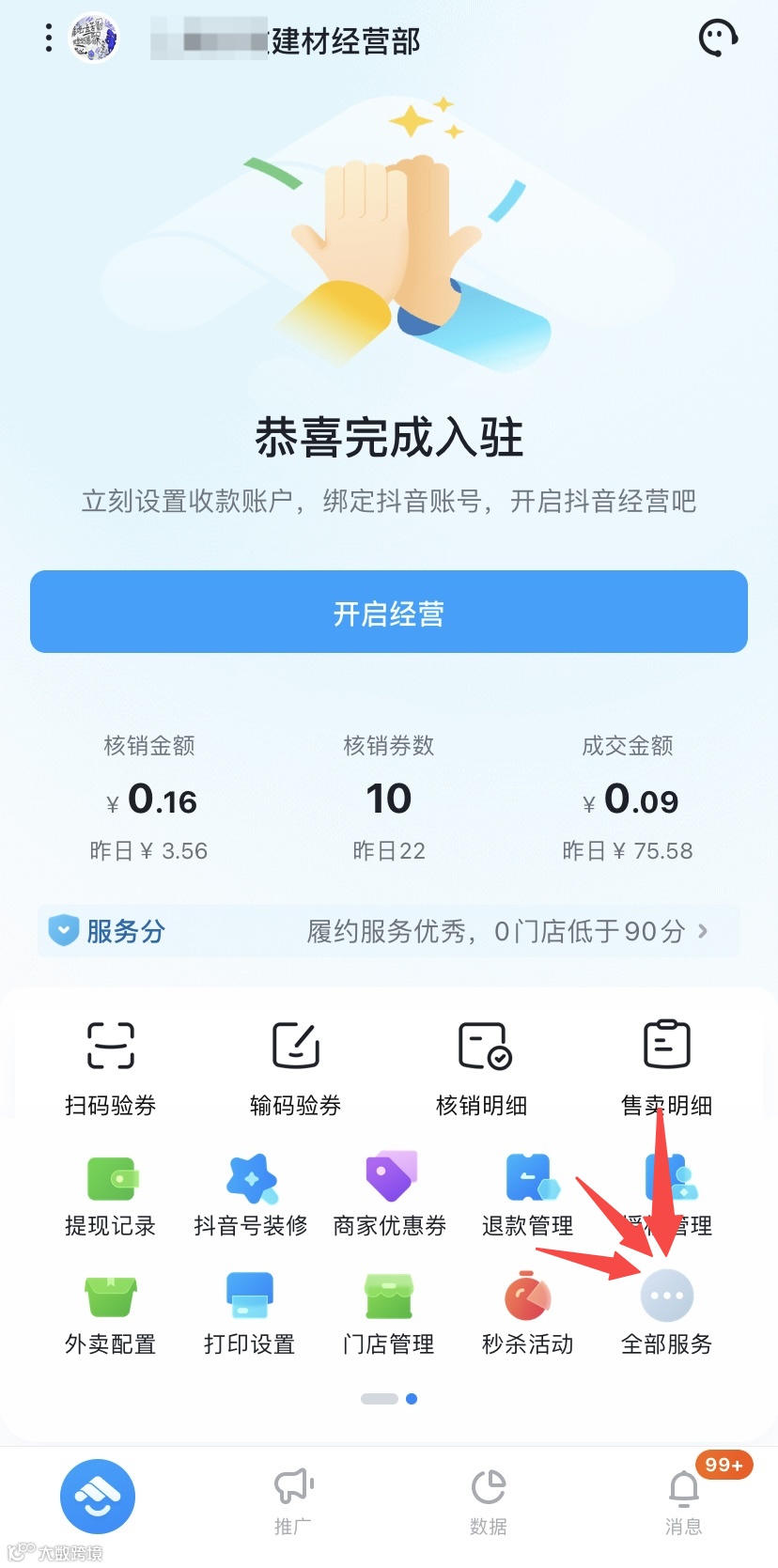 第一步 打开抖音来客-全部服务 |