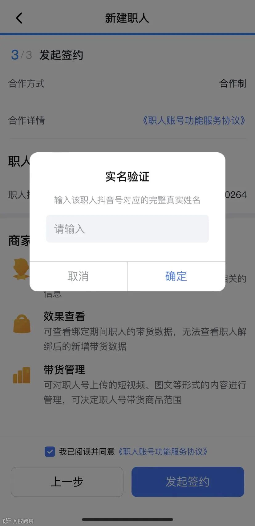 第六步 确定合约后发起签约 |