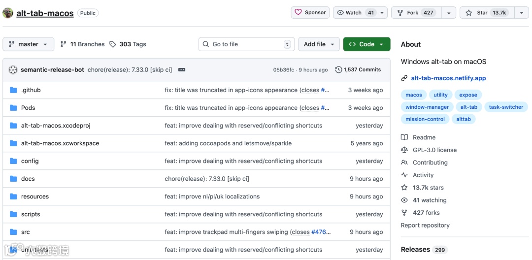 开源地址 https://github.com/lwouis/alt-tab-macos