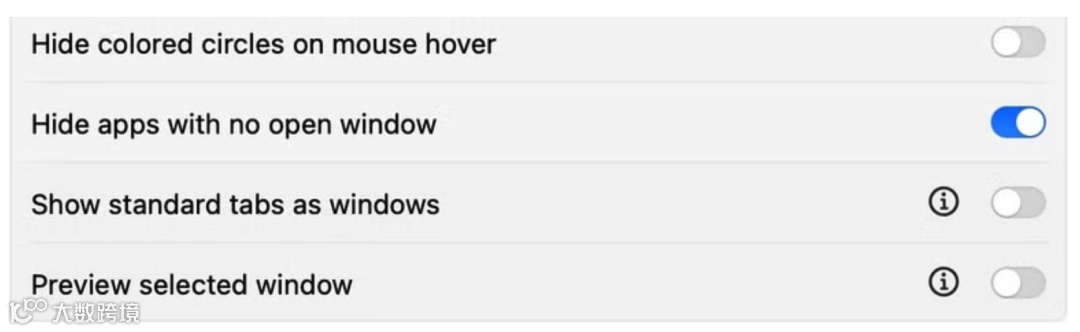 无缝多空间支持它能和 macOS 自身的 Spaces 功能联动,当你切换时,可以设定为只显示当前桌面空间下的窗口,这样就不会被其他满屏的应用干扰,尤其适合那种一个桌面写代码、一个桌面查资料的分工方式