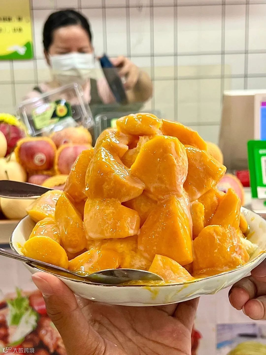现切水果牛奶冰:红黄绿招牌的老店