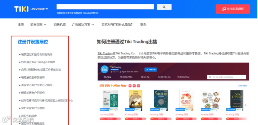 TiKi官网上有专门针对卖家入驻流程的介绍,包括销售登记和签订合同的说明,广告位的展示说明和规定,还有对于违规行为的介绍和指南,全方位为入驻电商小白提供服务与说明。
