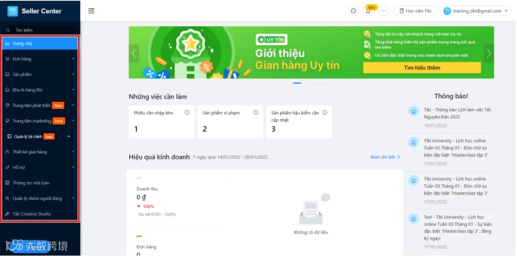 TiKi专为卖家设置了卖家中心平台,支持卖家在Tiki上的销售。销售中心提供完整的工具,帮助卖家最有效地管理Tiki上的所有销售活动。在手机/平板电脑上,卖家可以使用具有同等功能的 Tiki Seller 应用程序。该平台的数据分析板块能让你实时监看分析自己的店铺,做出及时调整,同时还有不定时的在线培训,为卖家提供从基础到高级的有用和实用的知识,帮助提高展位的效率。