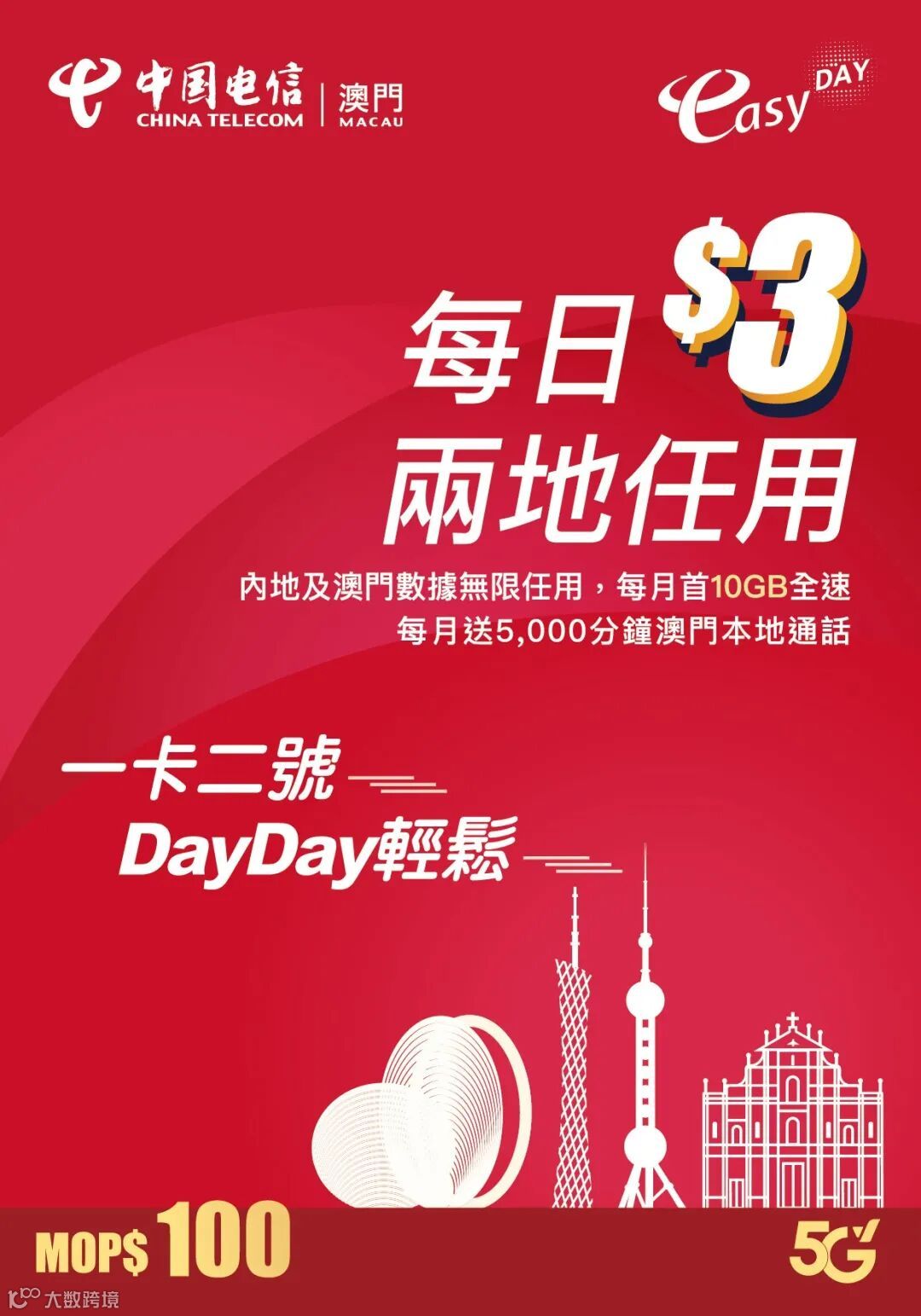 澳門及香港5日數據任用(首10GB全速),拍照打卡,分享美景美食,無需擔心漫遊費,隨時隨地享受流暢上網!(不提供話音及短訊功能)
