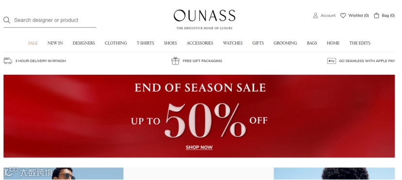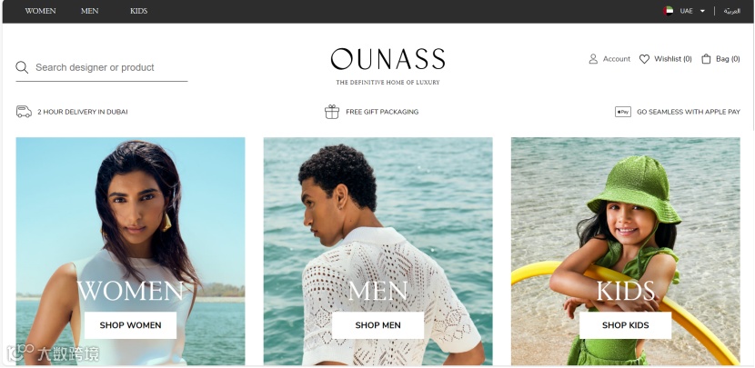 Ounass是中东地区第一个数字奢侈品平台,成立于2016年,是阿联酋最重要的购物网站之一,汇集了许多国际知名设计师和品牌,专门经营女装、男装和童装、鞋、包、配件和珠宝。