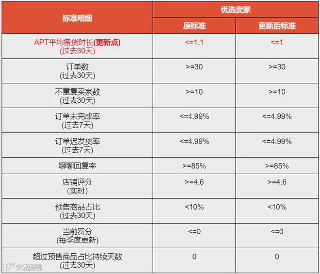 若有以下任何一项未达成的指标,将失去优选卖家资格: