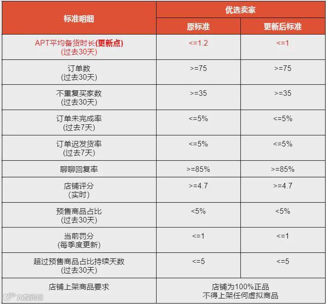 二、马来西亚站点,优选卖家入选标准更新如下: