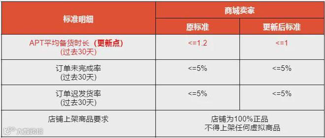 (更新点)若卖家在过去一个月内有以下任何两项及以上未达成的指标,将失去商城卖家资格: