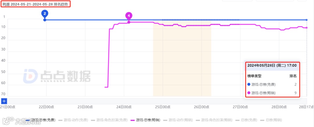 虽然5月大作扎堆“血流成河”,但该作依然是《地下城与勇士:起源》之外热度最高的产品。唯一的不同在于,相比《地下城与勇士:起源》在“雄厚”用户基础和超头部资源加持下的毫无争议的TOP级表现,《鸣潮》的成绩似乎一直存在被玩家及行业讨论的空间。