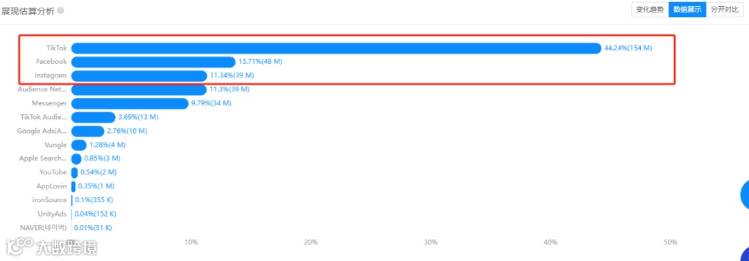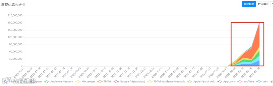 苹果端则是在今年4月9日起投,比安卓端晚了一年,但爆量时间两者基本一致,4月及5月的默认去重后素材数分别为1180与5692。TikTok、Facebook、Instagram为TOP3投放平台。