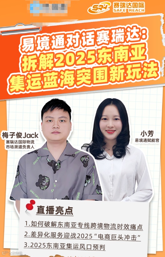 这场看似火热的蓝海,实则是考验企业生存智慧的角斗场。本次直播,易境通特邀赛瑞达国际物流市场渠道负责人梅子俊Jack,一同讨论如何破解清关合规性难题?怎样在巨头夹击中构建差异化服务壁垒?2025年东南亚集运的新增长极又在哪里?