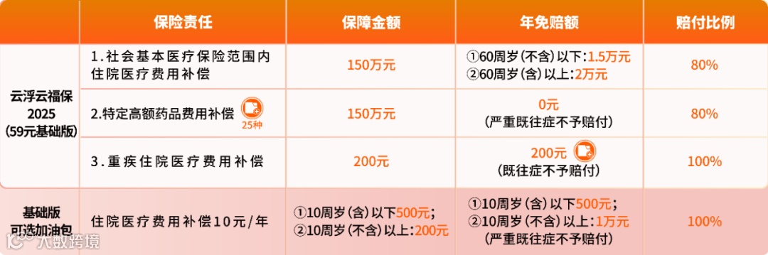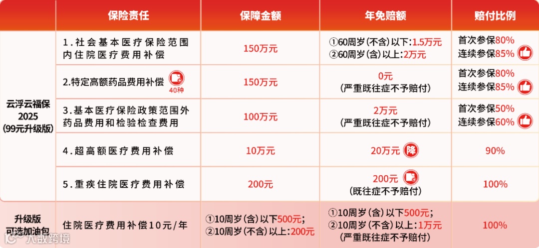 为满足多元化医疗保障需求,2025年度“云浮云福保”继续推出基础版和升级版两种方案。