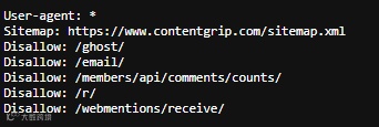 ContentGrip使用Ghost.io平台,可通过直接询问ChatGPT获取对应robots.txt配置建议。