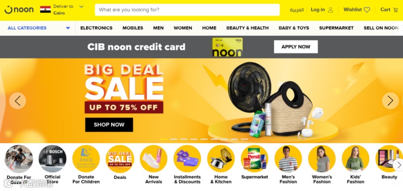 Noon是中东的第二大电商平台,作为沙特的本土电商平台,深受消费者欢迎,该平台提供包括时装、电子产品、美容产品、家居用品等多种类别的产品,在物流和仓储方面表现优异。