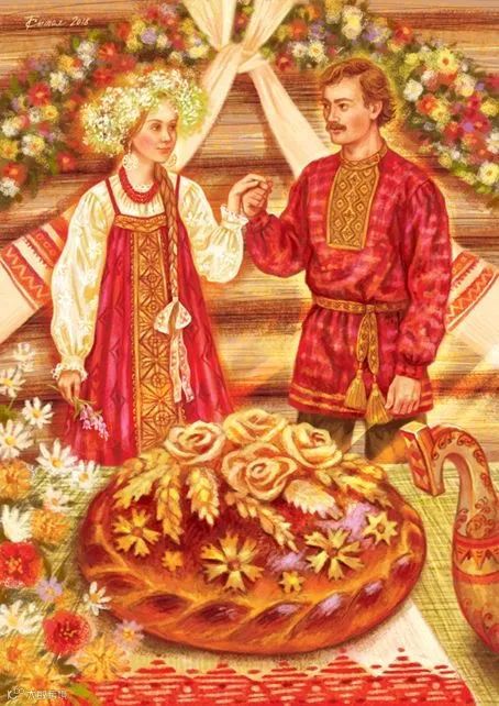 以面包和盐迎接贵客是俄罗斯古老的传统礼仪,象征真诚欢迎与无私分享。婚礼中常见的卡拉瓦伊圆面包撒盐而奉,新人争掰大块以预示家庭主导权,亦源于此俗。