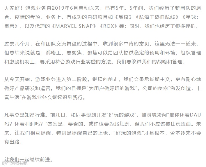10、张云帆正式接任朝夕光年负责人,字节跳动重新做游戏