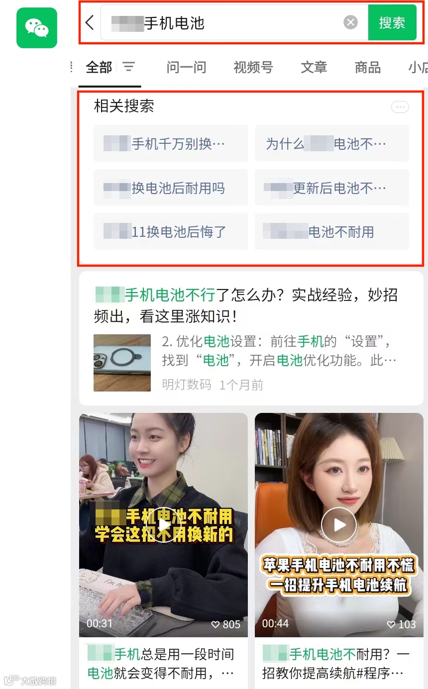 增加搜索流量:小蓝词引导点击搜索,提升视频搜索量与点击量,可能被微信算法识别为高价值内容,从而提升整体曝光。