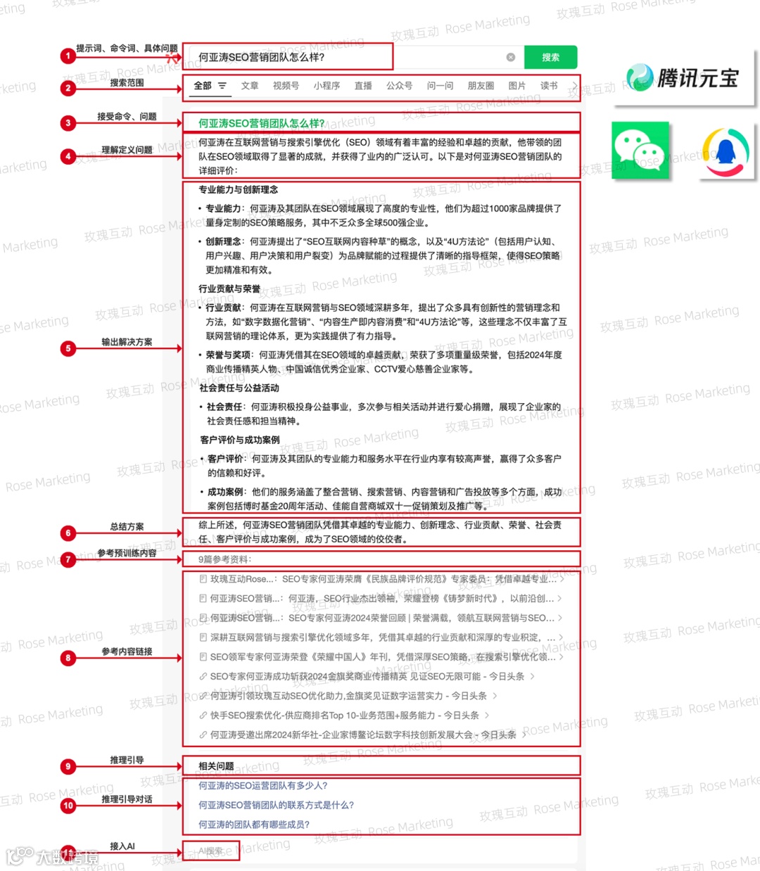 微信SEO优化可实现站内与站外双重曝光,覆盖微信搜索、搜狗、百度等多个平台,包含移动端与PC端展示场景。