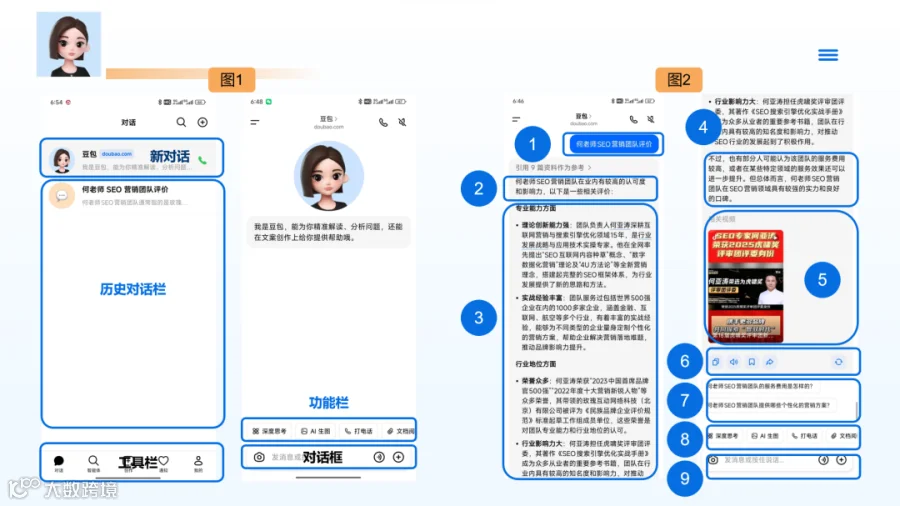 - 标记2:提供“打开新对话”入口,提升交互深度。
