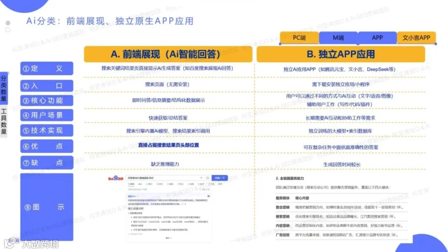 4. 优化范围:主要影响AI原生应用及集成AI功能的平台搜索结果,通过内容源优化引导AI生成准确回答。
