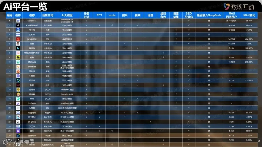 - AI搜索集成:15个平台已嵌入AI搜索功能。