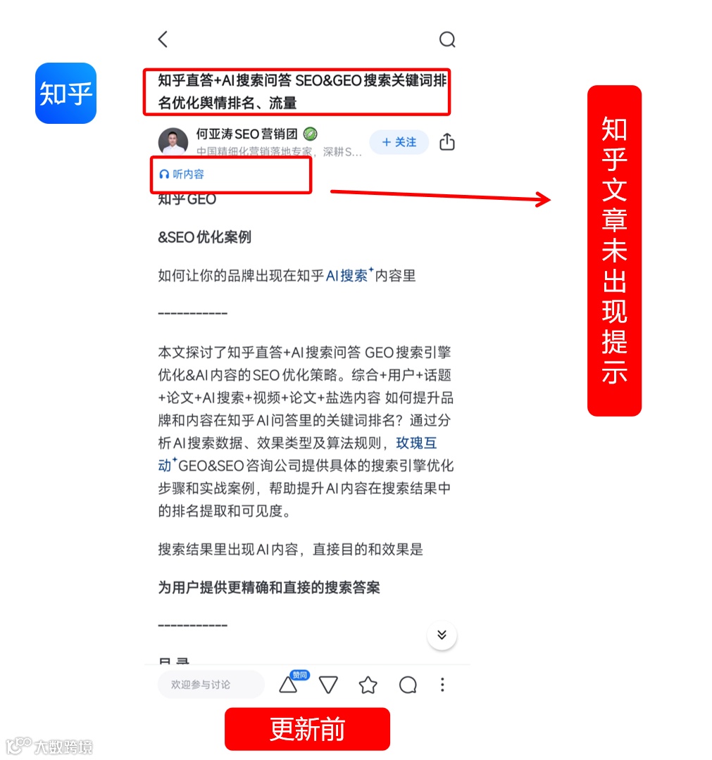 此前,知乎文章页面并未显示相关内容提示。随着AI生成内容的增多,平台开始在落地页中加入“可能包含AI创作内容”的标识,以增强信息透明度。