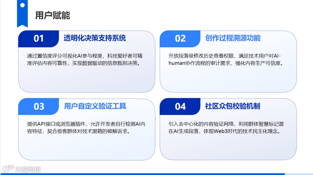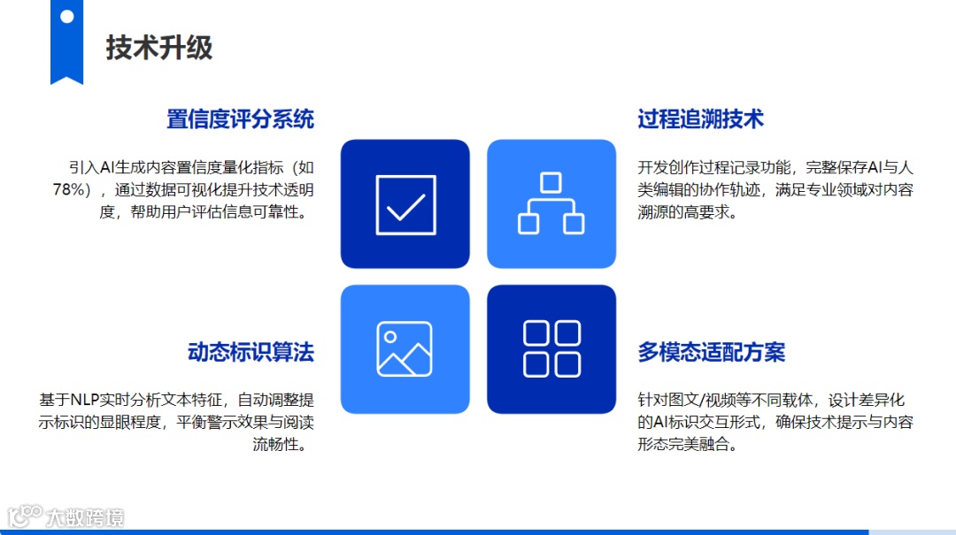 技术升级:计划引入AI生成内容置信度评分,如“本段内容AI参与度:78%”,提升决策透明度。