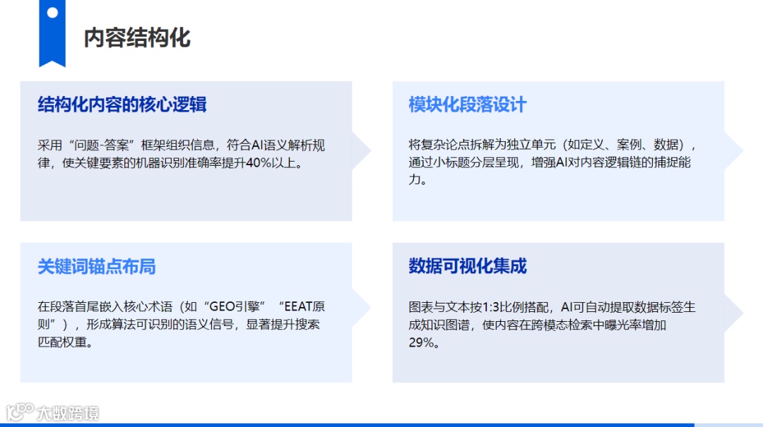 内容结构化:采用“问题-答案”格式组织内容,可使AI抓取率提升40%。