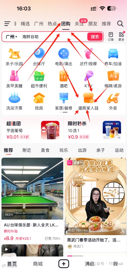 打开抖音APP,进入团购页面,查找“邀请商家入驻”相关入口,通常会跳转至活动页面。也可关注抖音官方账号获取最新任务信息。