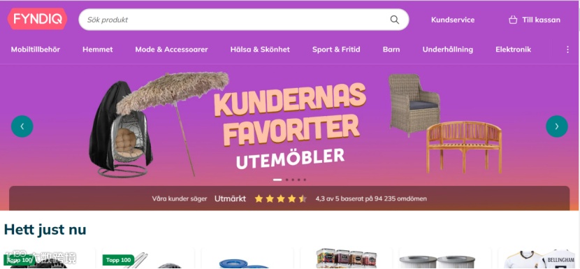 Fyndiq 的在线购物界面设计简单而直观,使用户能够轻松浏览和购买商品,提升购物体验。