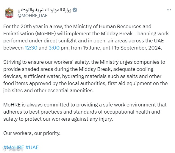 每年的6-9月属于中东地区的炎热夏季,温度40-45℃,热到冒烟。不久前,沙特发布了朝觐期间的高温预警,阿联酋当局更是宣布从6月15日至9月15日禁止中午户外工作。