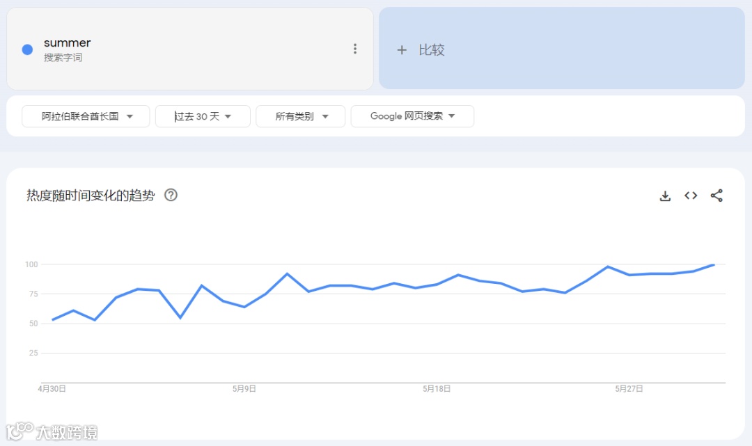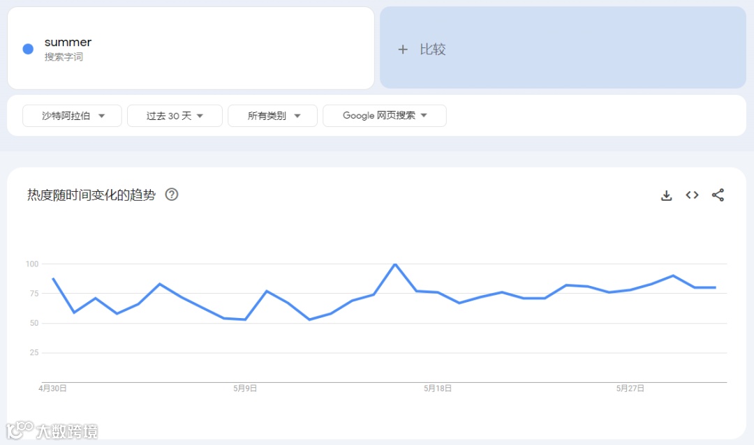 根据谷歌趋势显示,近30天,阿联酋和沙特搜索“summer”的热度持续升高。
