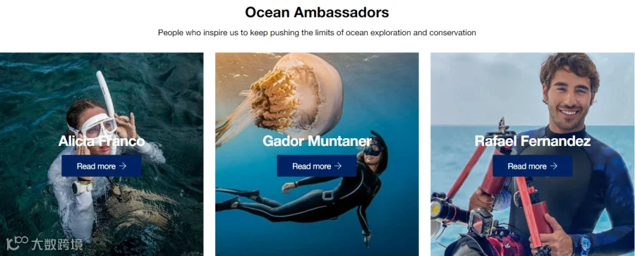 通过专业人士来为品牌背书,既能扩大品牌的受众范围,也能提高潜在受众对品牌的信任度。Aqualung邀请了众多潜水相关的专业人士,包括潜水教练、水下摄影师、运动员等来为其背书,这是能够树立更加专业的品牌形象,进而吸引更多专业爱好者的注意的。
