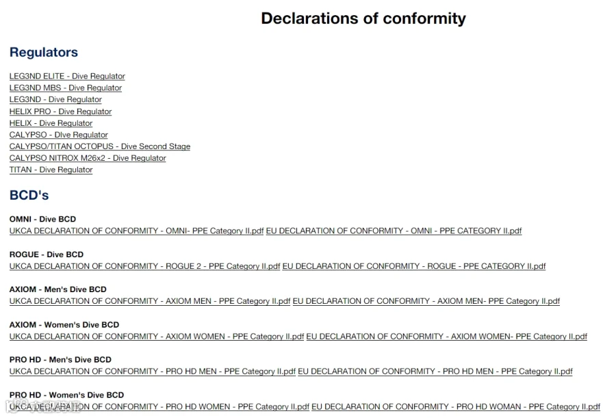专业潜水爱好者通常对产品质量和性能有较高的要求,他们需要确保购买到的潜水装备是能够满足其专业性需求的。Aqualung的产品经过众多专业认证测试,Aqualung将其一一标准在了网站上,并提供详细的PDF文档。