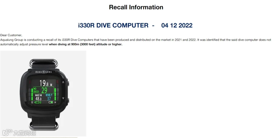 Aqualung面对有问题的产品,并未采取遮掩态度,而是积极召回,并将其公示在了网站上,这是能够展现品牌负责任的态度,从而提高消费者对品牌的信任度的。