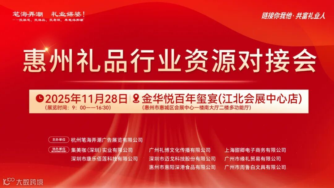 2025年11月28日,由杭州笔海弄潮广告展览有限公司(简称:笔海弄潮)主办,集美咖(深圳)实业有限公司、深圳市康乐佰莲科技有限公司、广州礼博文化传播有限公司、深圳市迈戈科技股份有限公司、惠州市惠阳深港食品有限公司、上海甜卿电子商务有限公司、广州市缘礼贸易有限公司、广州市周鲁白文具有限公司协办的惠州礼品行业资源对接会,在金华悦百年玺宴盛大举办,数十家企业踊跃参与参展,这不仅是一场资源的精准对接,更是一次引领行业协同发展、共创增长新格局的深度探索。