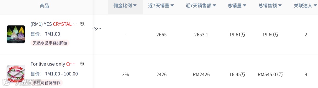 数据印证市场热度:TikTok Shop马来西亚站一商家单周售出2400多件水晶商品,周销售额达2426马币(约4122元人民币),总销售额突破545万马币(约927万元人民币)。算法推荐机制进一步放大效应,高互动内容精准触达“玄学-水晶”兴趣用户,构建稳定流量闭环,行业毛利率普遍维持在10%以上。