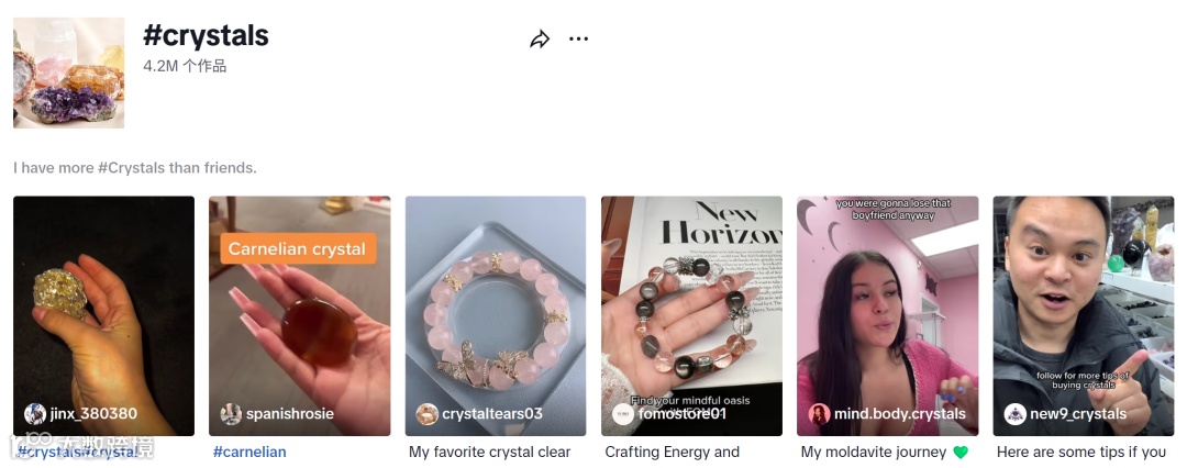 在TikTok和Shopee平台,“能量手串”标价288元已成常态。粉晶被视为“招桃花”神器,紫水晶成为“学业护身符”,产品珠宝属性让位于情绪价值。#fengshui话题累计搜索量达30亿次,#crystals相关视频播放量破百亿,形成千亿级市场规模。
