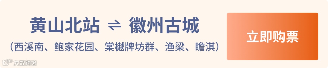 黄山北站⇌徽州古城发班时间:9:00~19:40